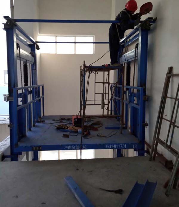 液壓升降貨梯生產(chǎn)制造廠家-濟南金創(chuàng)機械制造有限公司,為威海客戶定做的升高13米,載重5噸的導(dǎo)軌鏈條式液壓升降貨梯,嚴(yán)寒天氣下,經(jīng)過安裝師傅加班加點的努力,昨天下午通過了客戶方的驗收工作。