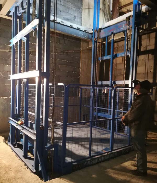 鏈條式液壓升降貨梯是用于貨物升降的升降機械設(shè)備,采用液壓油缸作為主要動力,通過重型鏈條和鋼絲繩傳動,保證機器運行的絕對安全。貨梯無需地坑和機房,特別適合于有地下室、倉庫改造、新建貨架等,具有安裝維修方便、美觀、安全、操作方便。具體根據(jù)現(xiàn)場的實際環(huán)境生產(chǎn)。